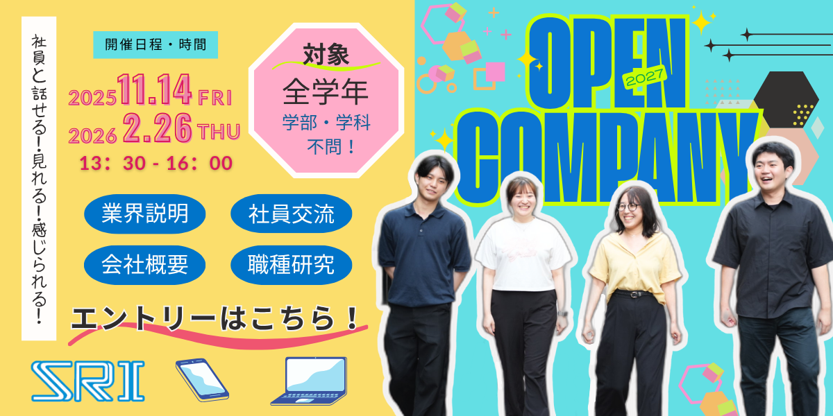2027年向け就職活動オープンカンパニーの日程が決定しました。